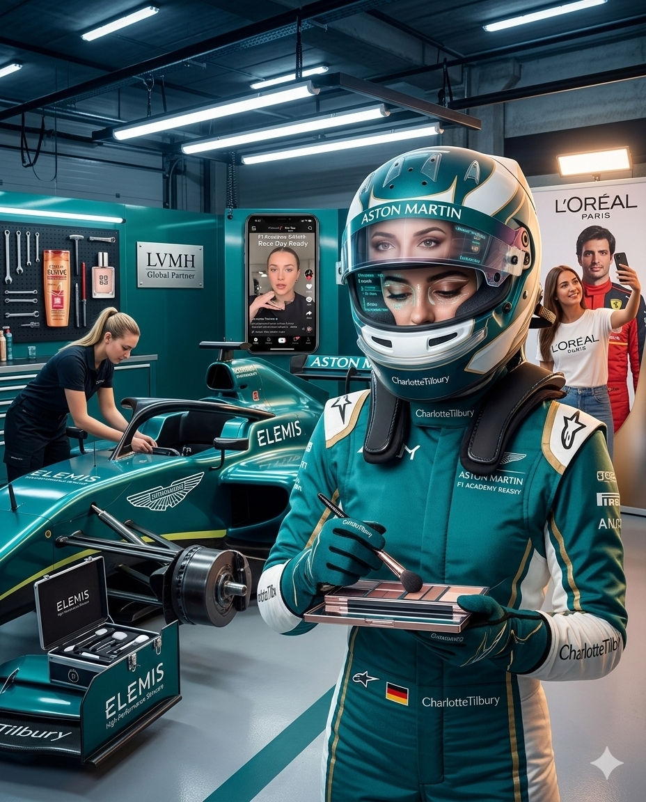 Durante 2024 y 2025, dos hitos recientes han marcado un antes y un después en la relación entre el sector belleza y la F1. Por un lado, Charlotte Tilbury se convirtió en la primera marca de belleza en patrocinar un coche de carreras, específicamente el de Chloe Chong en la categoría femenina F1 Academy. El lema "Makeup Your Destiny", visible en el monoplaza, es una muestra clara de branding de empoderamiento dirigido a las nuevas generaciones.